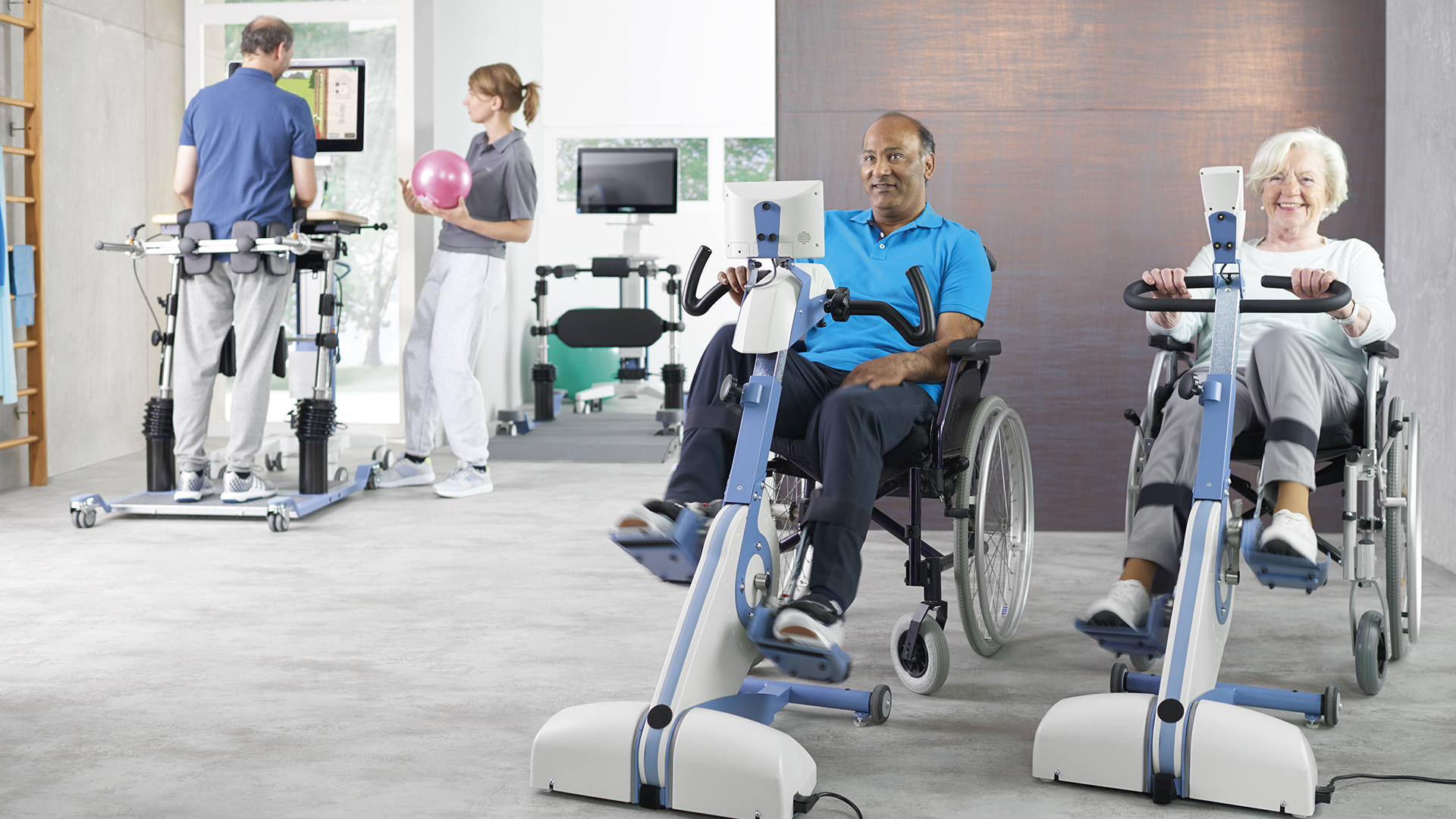Ikäihmisiä voidaan kunnosta riippuen aktivoida monin eri tavoin. Kuten muussakin kuntouttavassa ja ennaltaehkäisevässä toiminnassa, tulee myös ikäihmisten harjoittelussa ja kuntoutuksessa muistaa oikeanlainen ja riittävä suoritustaso. Laitteita ja välineistöjä valikoidessa on hyvä huomioida erilaiset rajoitteet ja mahdollistaa toiminta kaikille kunnosta riippumatta. Siksi laitevalikoimaan on hyvä ottaa mukaan niin helppokäyttöisiä ja turvallisia kuntosalilaitteita kuin moottoroituja polkulaitteita. Värähtelyharjoittelulla voidaan helposti herätellä lihasaktivaatiota ja sillä on tutkitusti myös tehoa osteoporoosin ennaltaehkäisyssä. Asiantuntijamme auttavat valitsemaan tarpeeseesi sopivat laitteet ikäihmisten kuntoutukseen ja harjoitteluun.